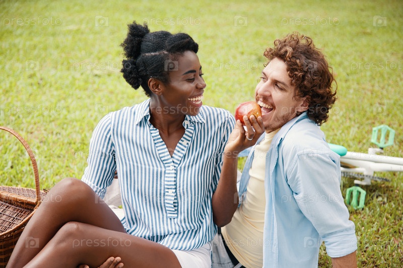 Игральная мультиэтническая пара на пикнике