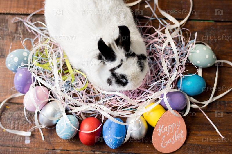Милый пасхальный кролик в гнезде