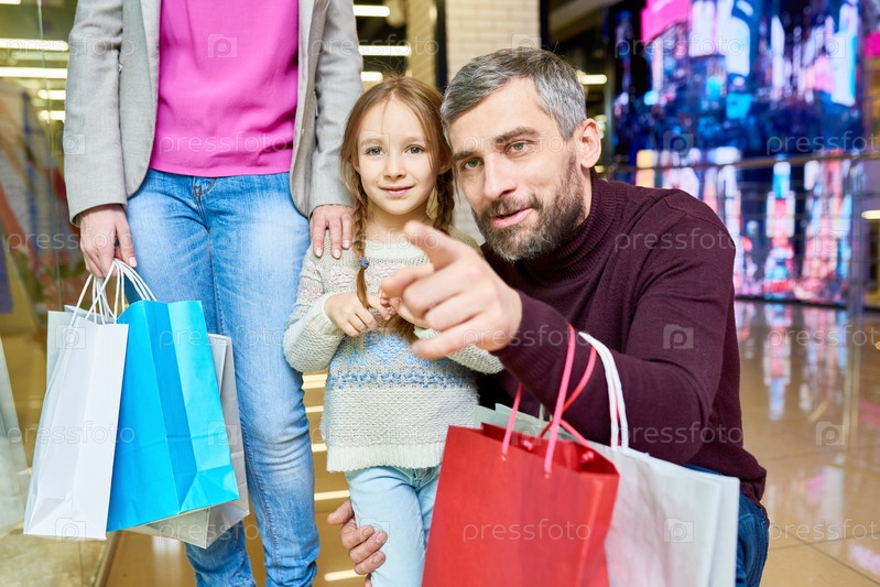 Маленькая девочка ходит по магазинам с папой