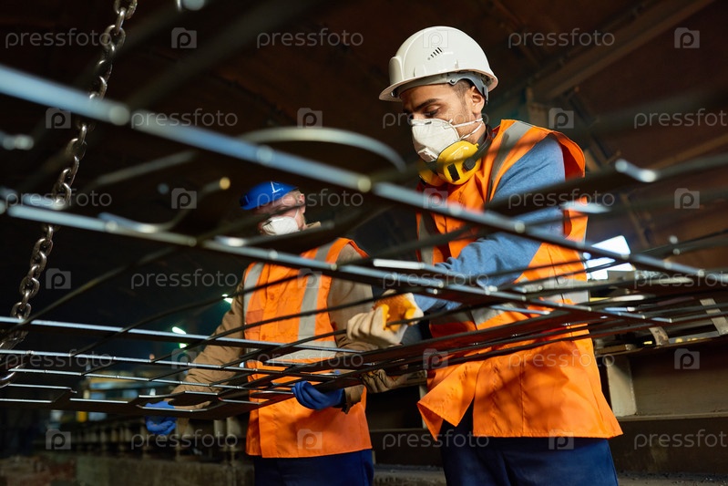 Молодые рабочие, использующие подъемный балл