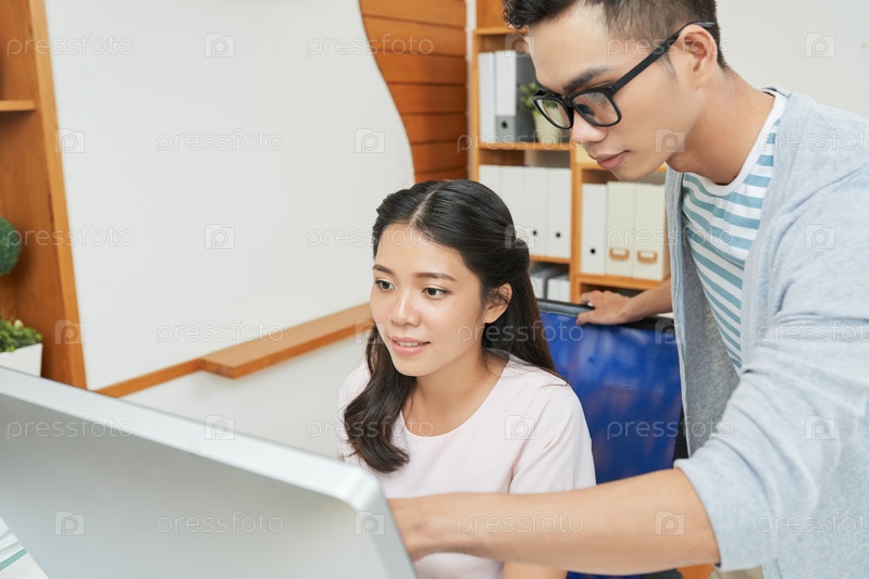Коворкинг мужчина и женщина, использующие компьютер
