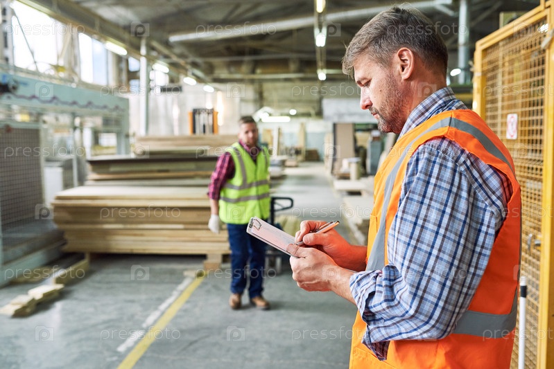 Рабочий отправляет материалы на складе