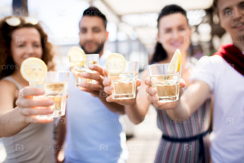 Друзья наслаждаются напитками на вечеринке