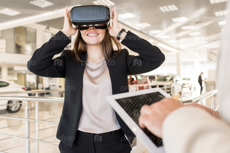 Красивая молодая женщина наслаждается VR