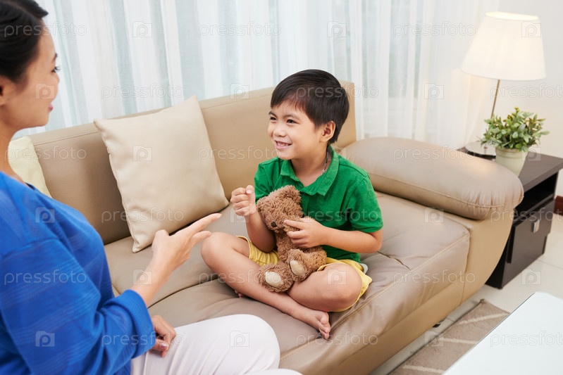 Мальчик играет с мамой