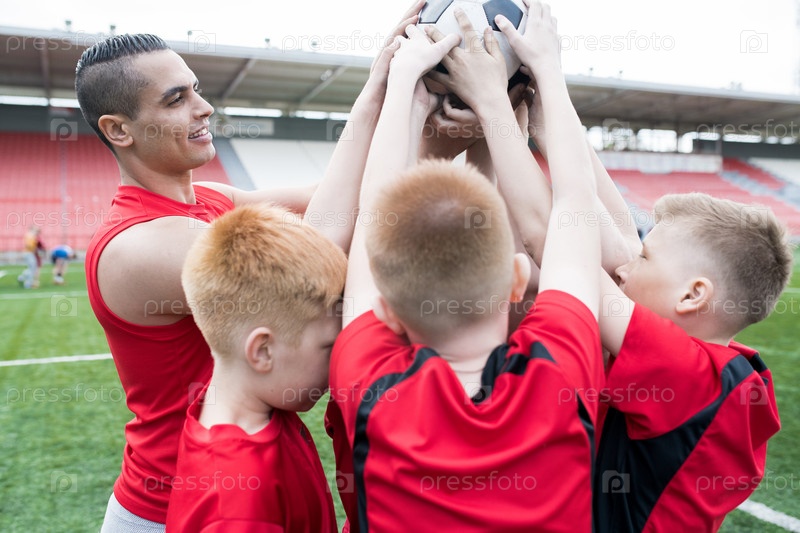 Футбольная команда держит мяч
