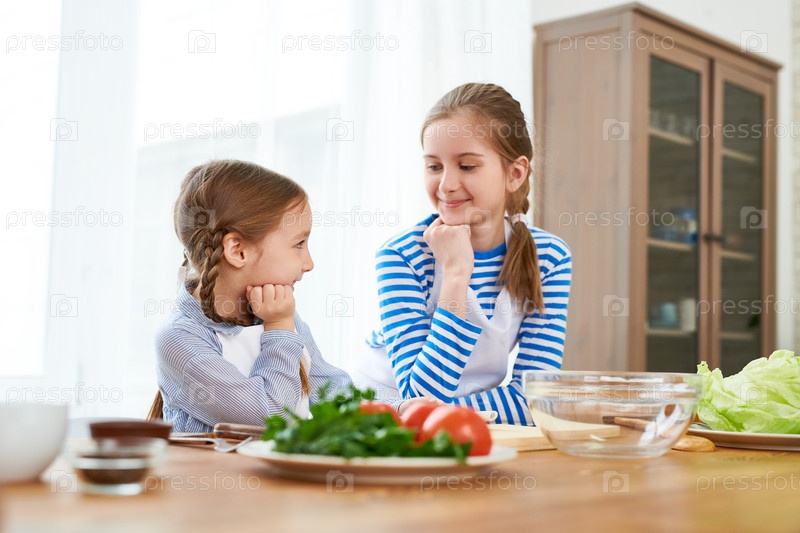Маленькие сестры обсуждают праздничное меню