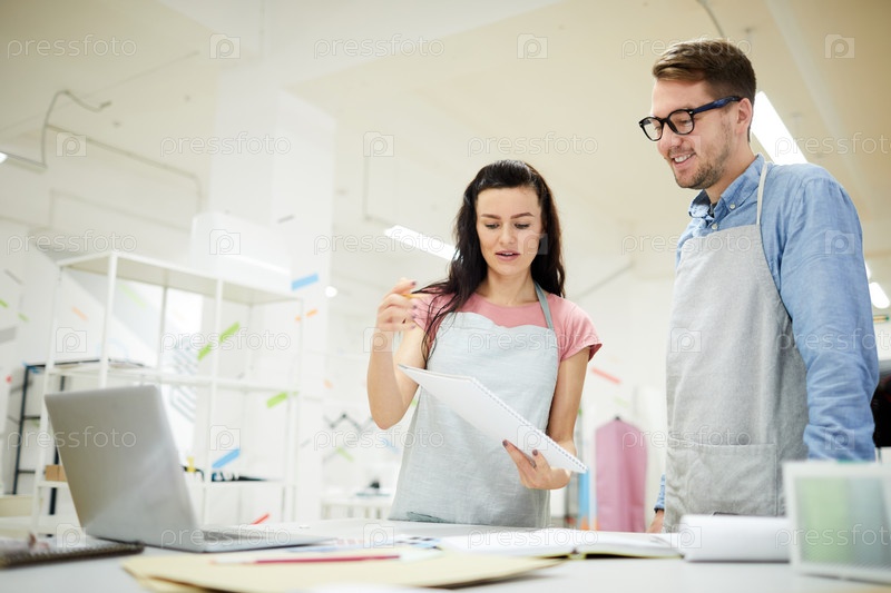 Леди объясняет коллеге идею модного дизайна