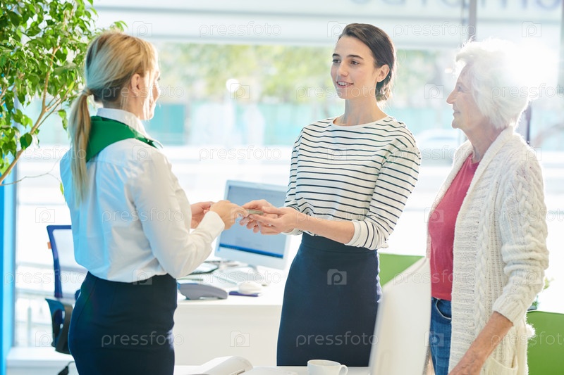 Банковский специалист по обслуживанию клиентов дает деньги молодой леди с мочой