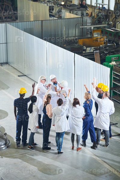 Группа протестующих фабричных рабочих