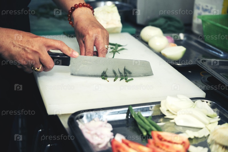 Кухарка, режущая зеленую ли