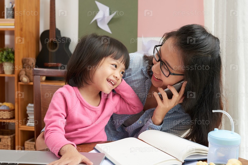 Деловая женщина дома с очаровательной дочерью