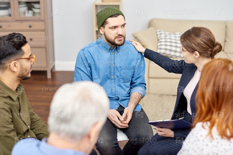Поощрение пациента с депрессией на групповой сессии терапии