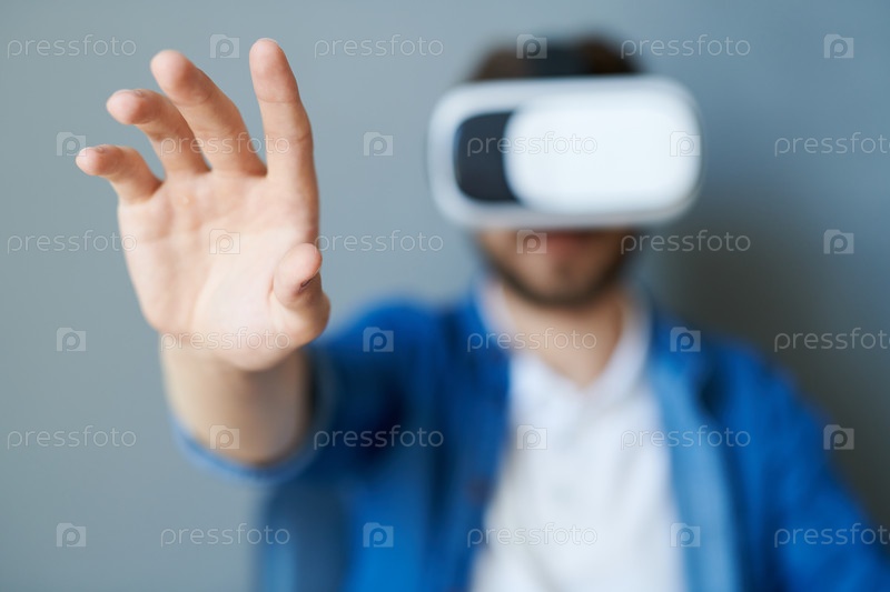 Человек, протягивающий руку в VR Man