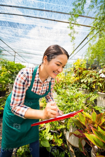 Женщина, работающая в оранжерее