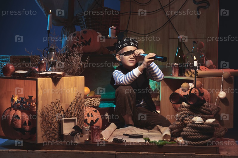 Мальчик, играющий в ночь Хэллоуина