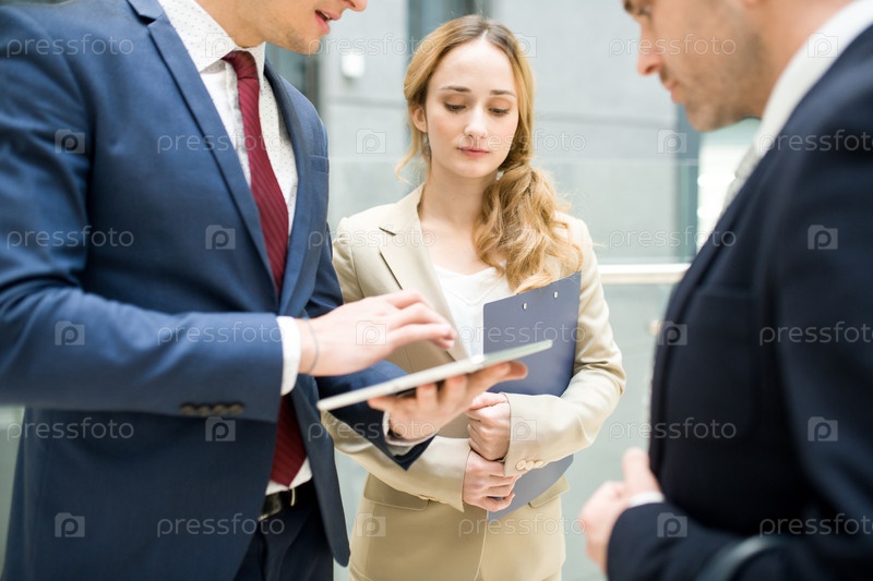 Молодая бизнесвумен с современными коллегами