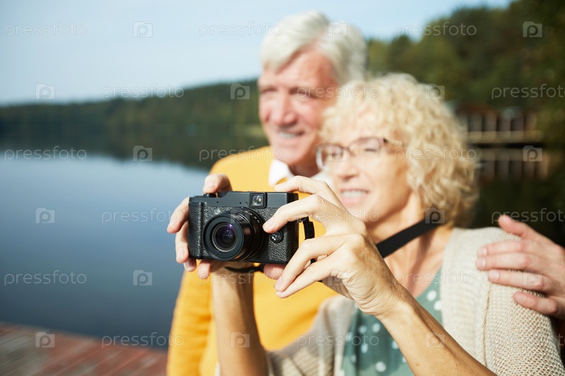 Старшая пара фотографирует природу на каникулах