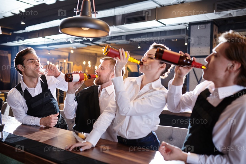 Официанты соревнуются, кто пьет пиво быстрее