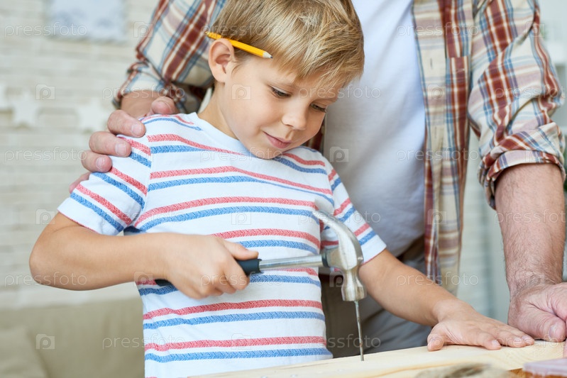 Маленький мальчик, забивающий ногти