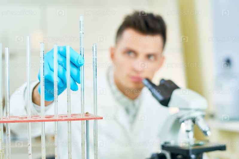 Красивый ученый сосредоточился на работе