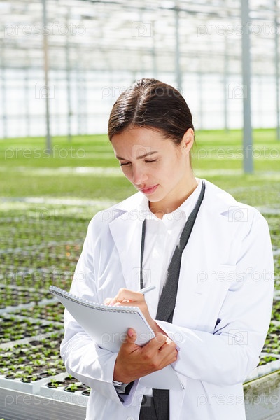 Женщина, работающая в промышленной теплице