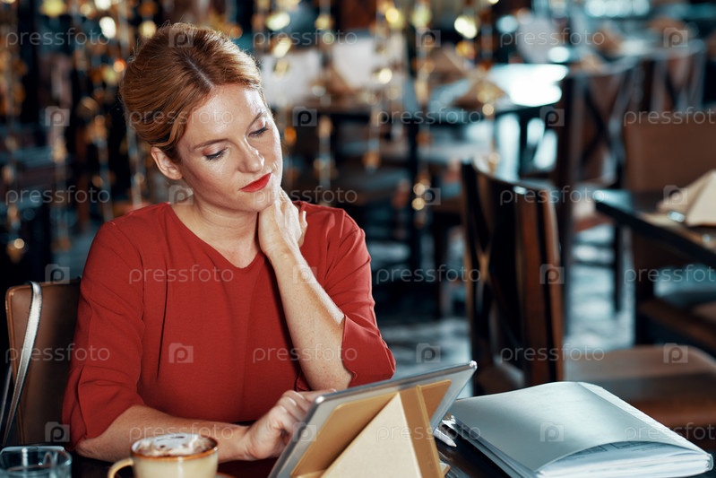 Женщина, использующая сенсорный панель