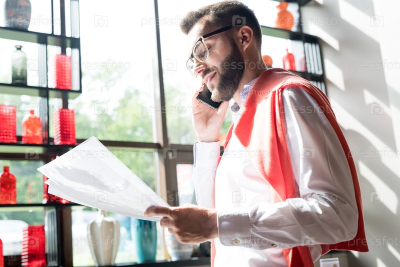 Бизнесмен разговаривает по телефону в солнечном свете