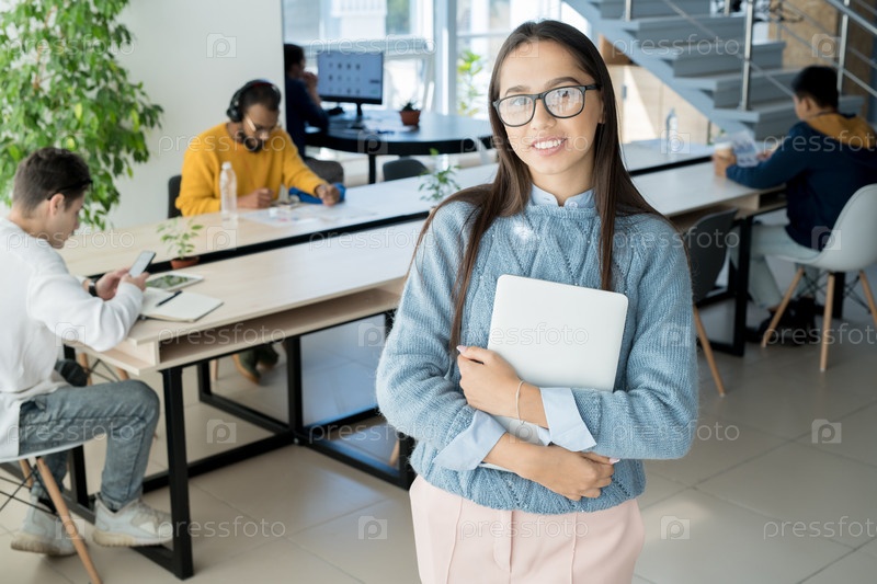Молодой менеджер стоит в офисе