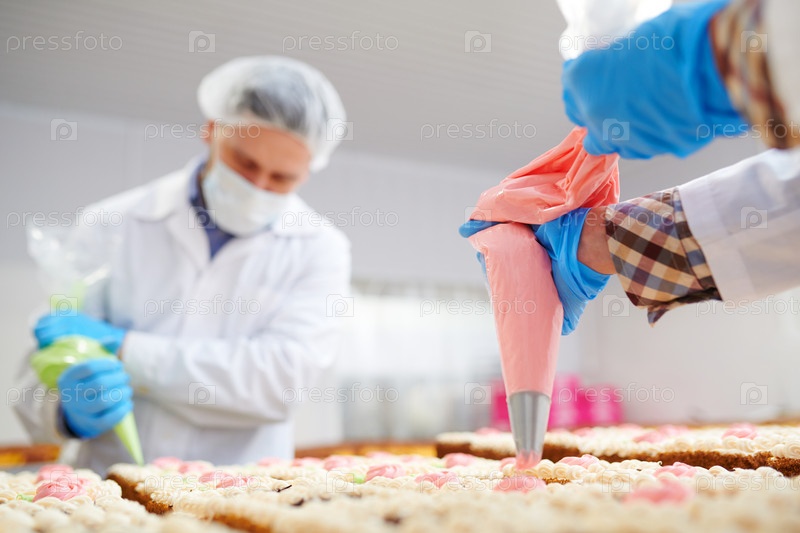 Профессиональные пекари украшают торты сливочным маслом