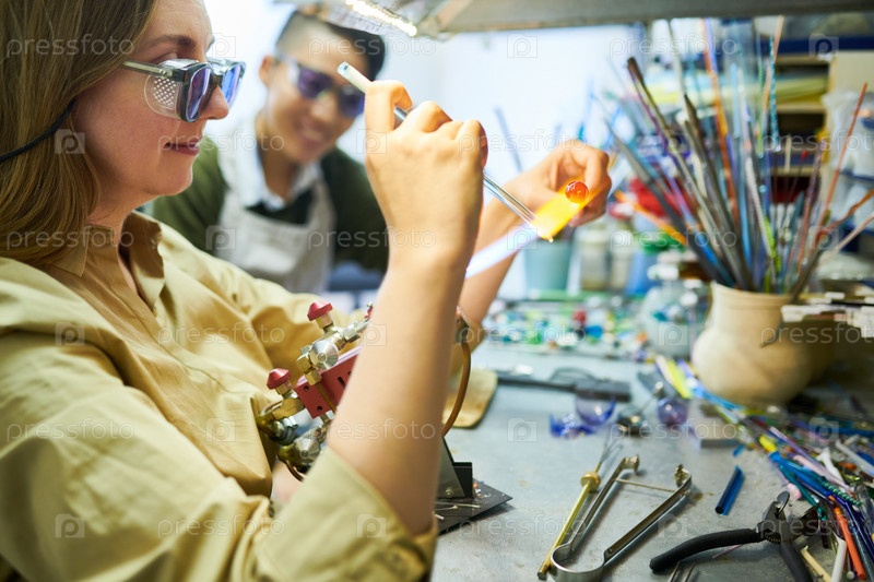 Две женщины-художницы в студии Lampwork