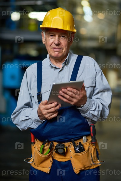 Старший работник позирует с цифровым планшетом