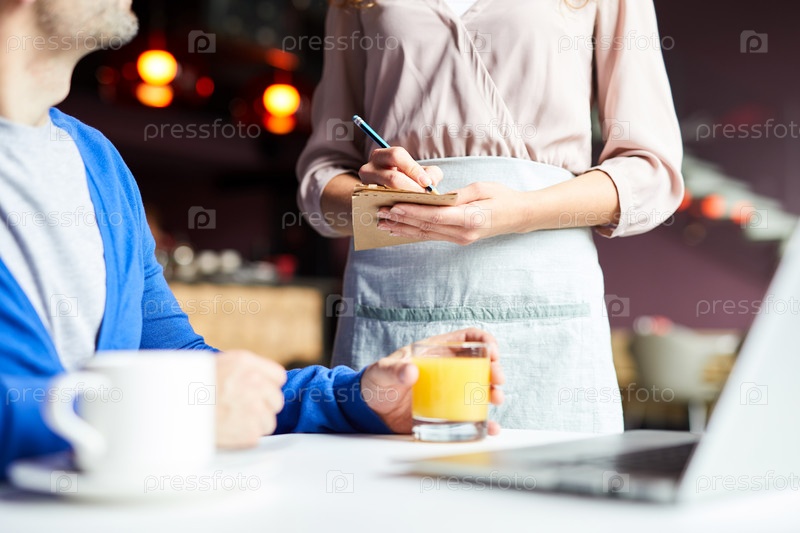 Официантка принимает заказ от клиента