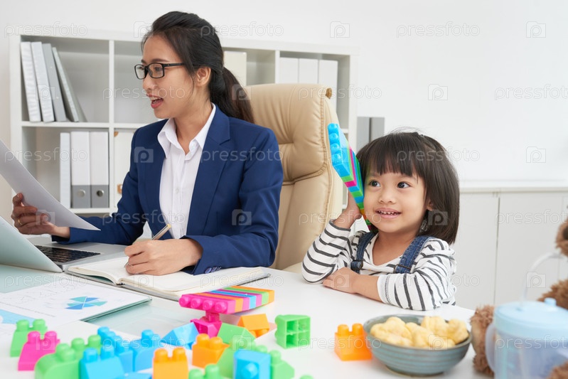 Рабочая женщина с очаровательной девушкой на рабочем месте