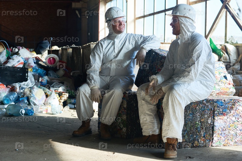 Работники в мастерской по переработке отходов