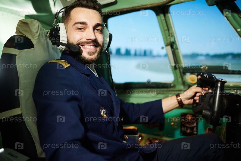 Пилот позирует в кабине самолета