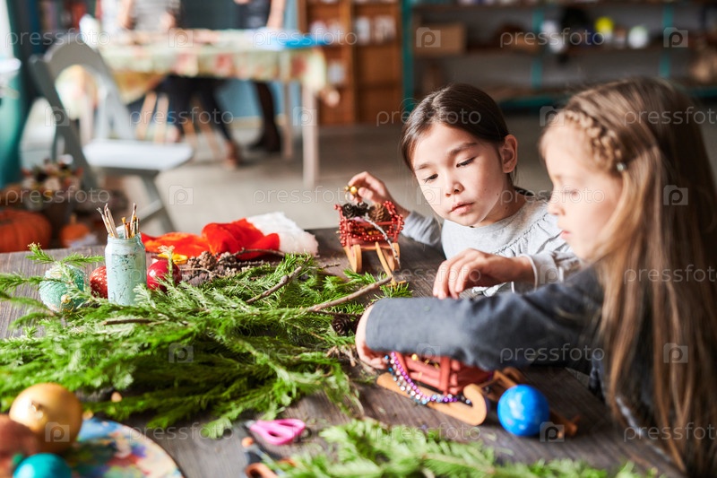 Милые девочки делают рождественские подарки