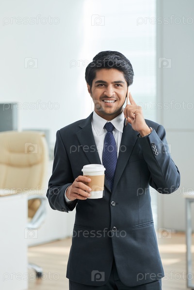 Бизнесмен разговаривает по телефону во время перерыва на кофе