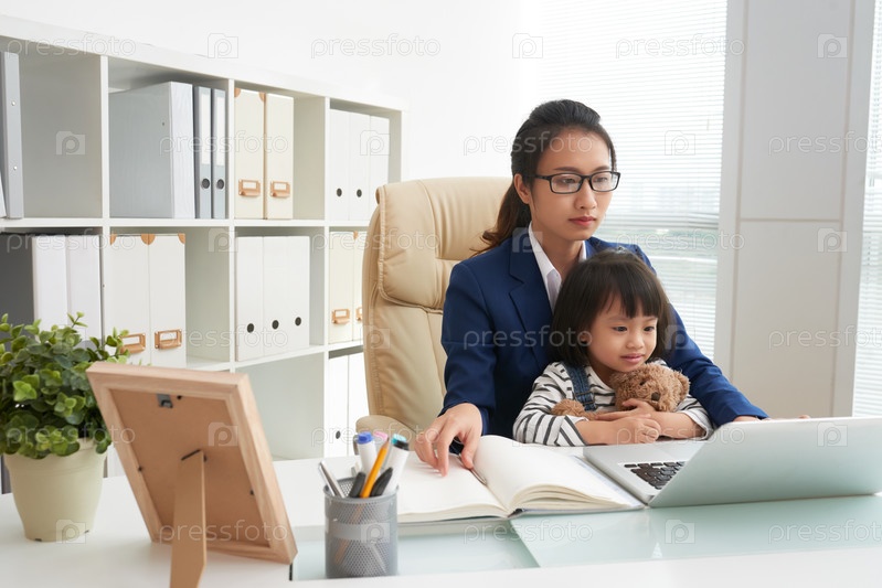Деловая женщина с дочерью на работе