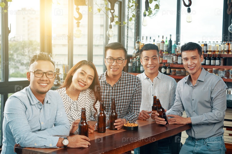 Веселые коллеги в пабе