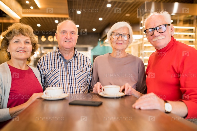 Группа пожилых людей, отдыхающих в кафе