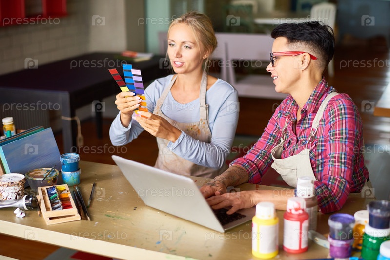 Две женщины-дизайнеры интерьера работают вместе
