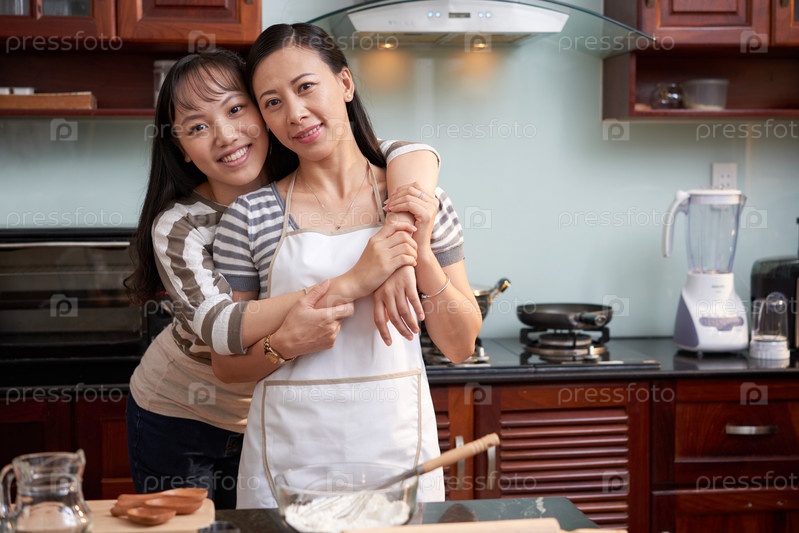 Любящие сестры на домашней кухне