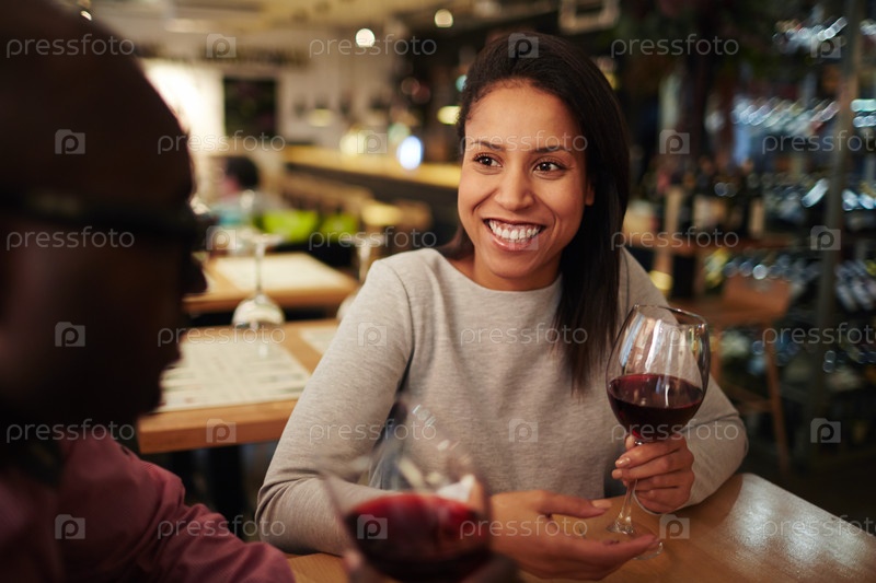 Веселая женщина в винном ресторане