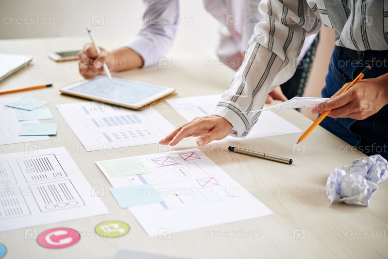 Сотрудники, создающие план с помощью бумаг