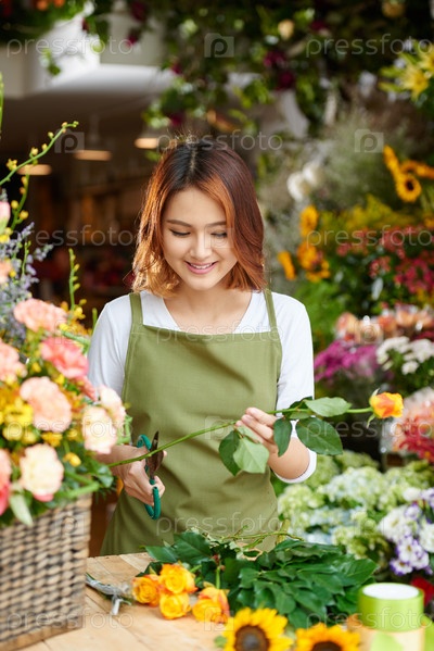 Красивый цветочник, занятый работой