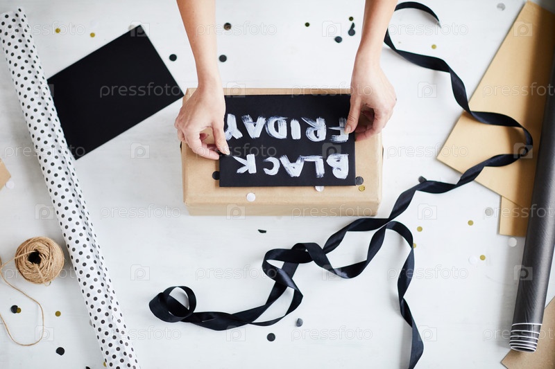 Женщина, готовящая подарок на Черную пятницу