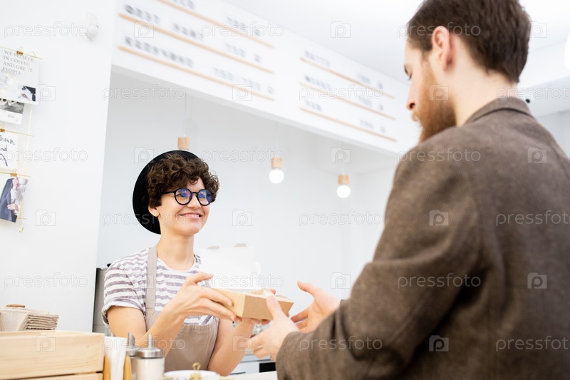 Предоставление бумажной коробки со сладостями клиенту в пекарне