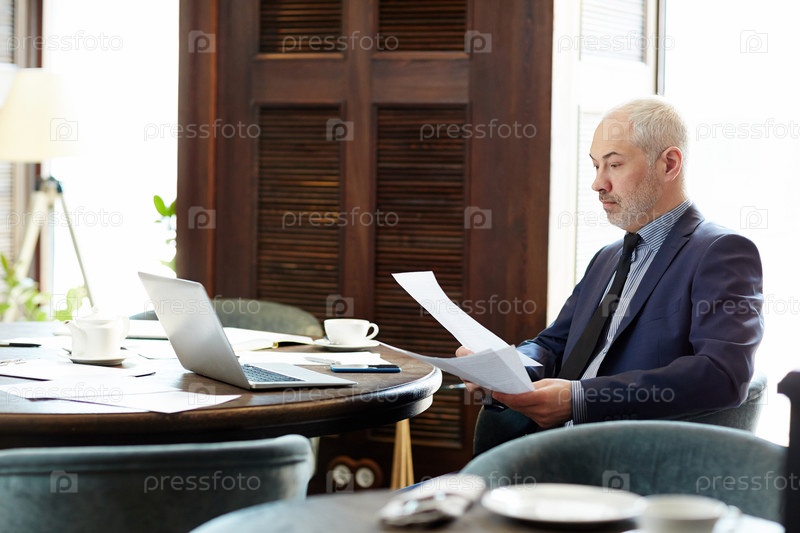 Бизнесмен, изучающий контракт