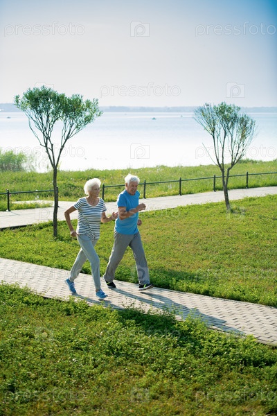 Старшая пара бегает в парке